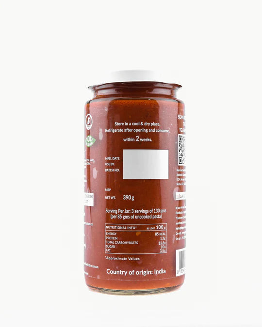 If spice is your thing, then it doesn't get better than this HOT pasta sauce. Made with juicy, vine-ripened cherry tomatoes sourced from farms in Uttrakhand, a dash of garlic and a handful of spicy Guntur chillies from Andhra Pradesh, this sauce has got the zing to make your palate sing!