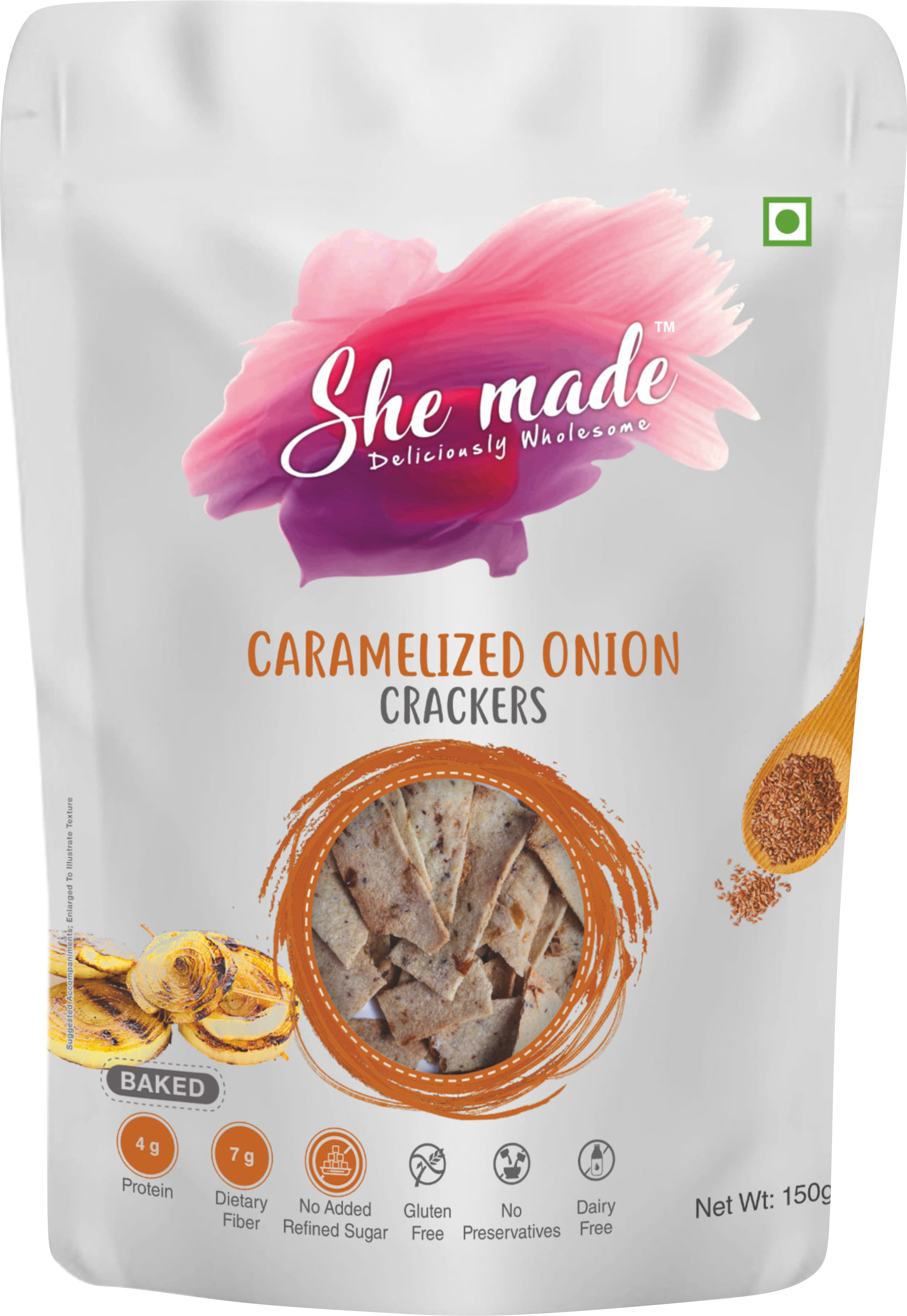 FLAVOURFUL & CRUNCHY CRACKERS: Baked cracker biscuits made from caramelized onions.