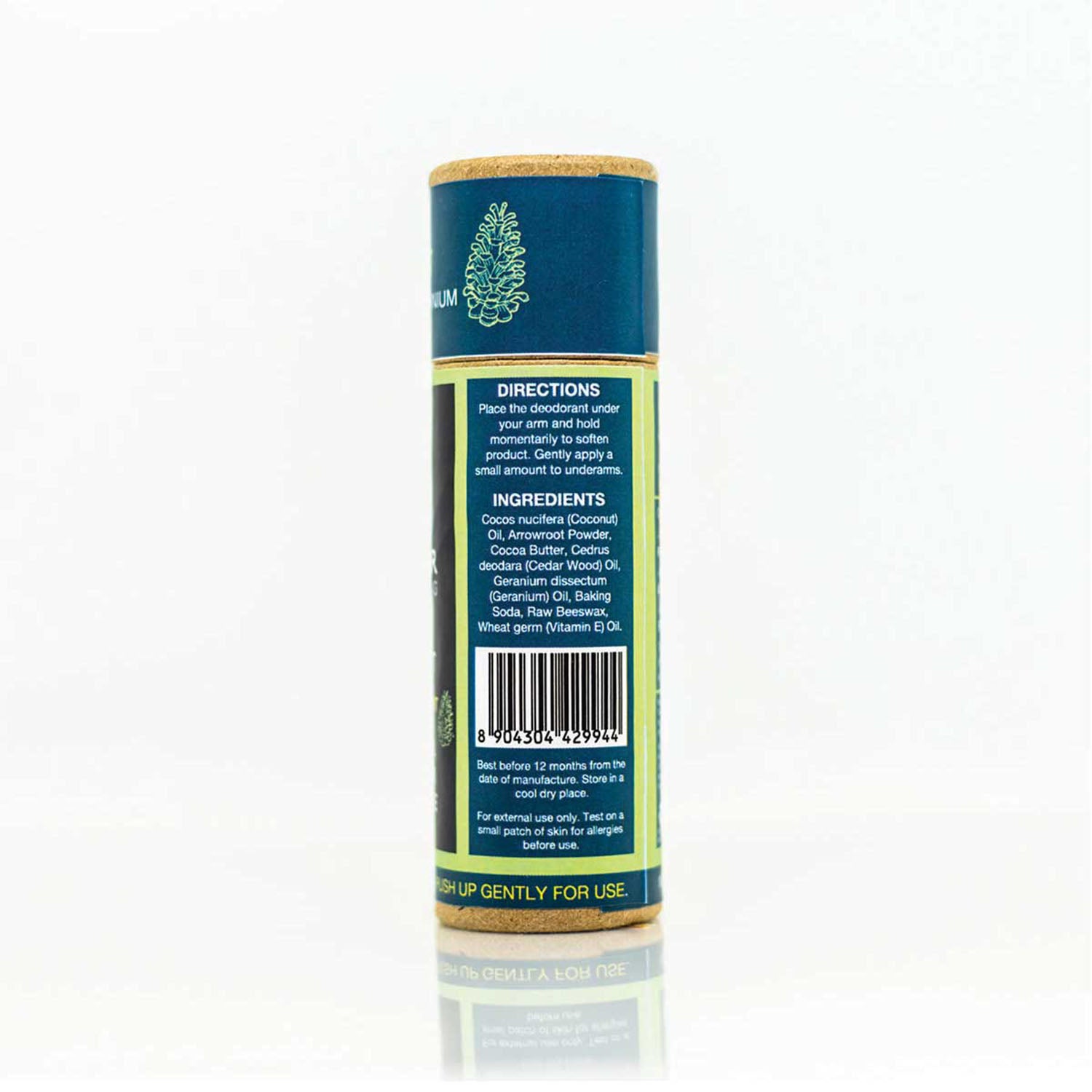 Take advantage of our Natural Deodorants and the mesmerising yet effective blend of musky Cedar wood & Floral Geranium essential oils that will be sure to keep you surrounded by Nature all day.
