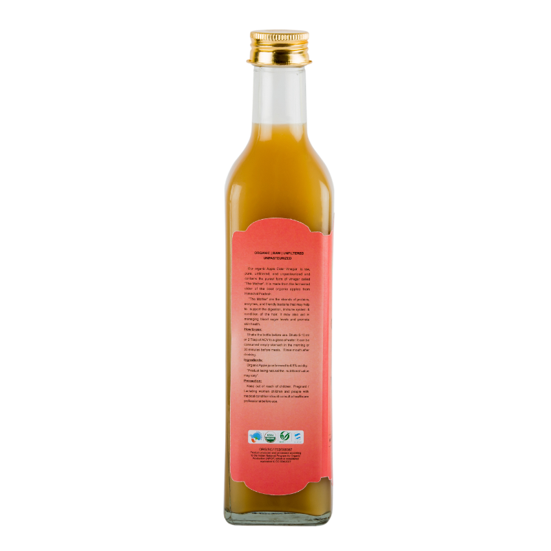 Our organic apple cider vinegar is raw, pure, unfiltered, and unpasteurized form of vinegar. It contains the purest form of vinegar called "The Mother". It is made from the fermented cider of the best organic apples from Himachal Pradesh. "The Mother" contains strands of proteins, enzymes, and friendly bacteria that may help to support the digestive system, immune system and condition of the hair. It may also aid in managing blood sugar levels and promote skin health.