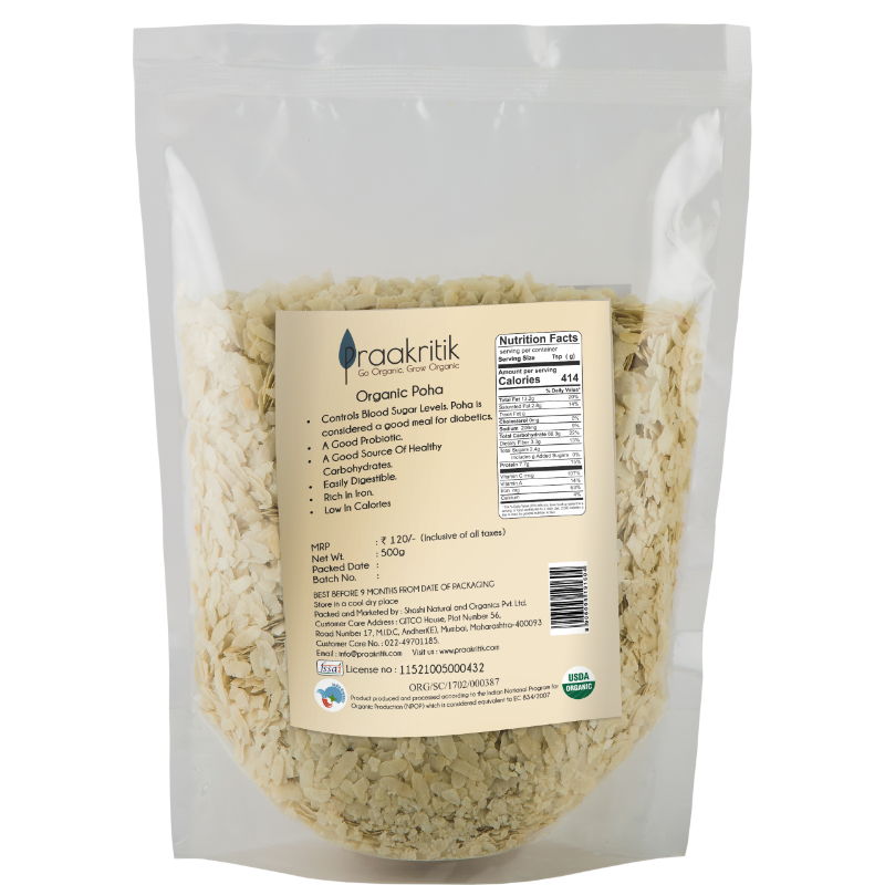 Low in calories and made from the finest dry husk rice, our Organic Poha is a wholesome meal. This guilt-free indulgence is popularly used as a cereal or for making savoury and sweet breakfast dishes that are healthy and delicious. Our Organic Poha has approximately 76.9% of carbohydrates and 23% fat, which makes it an ideal food choice for those seeking to lose weight. It is a good source of iron, fiber and essential vitamins. Poha is gluten-free, and its unique flavor and textures can brighten up your day.