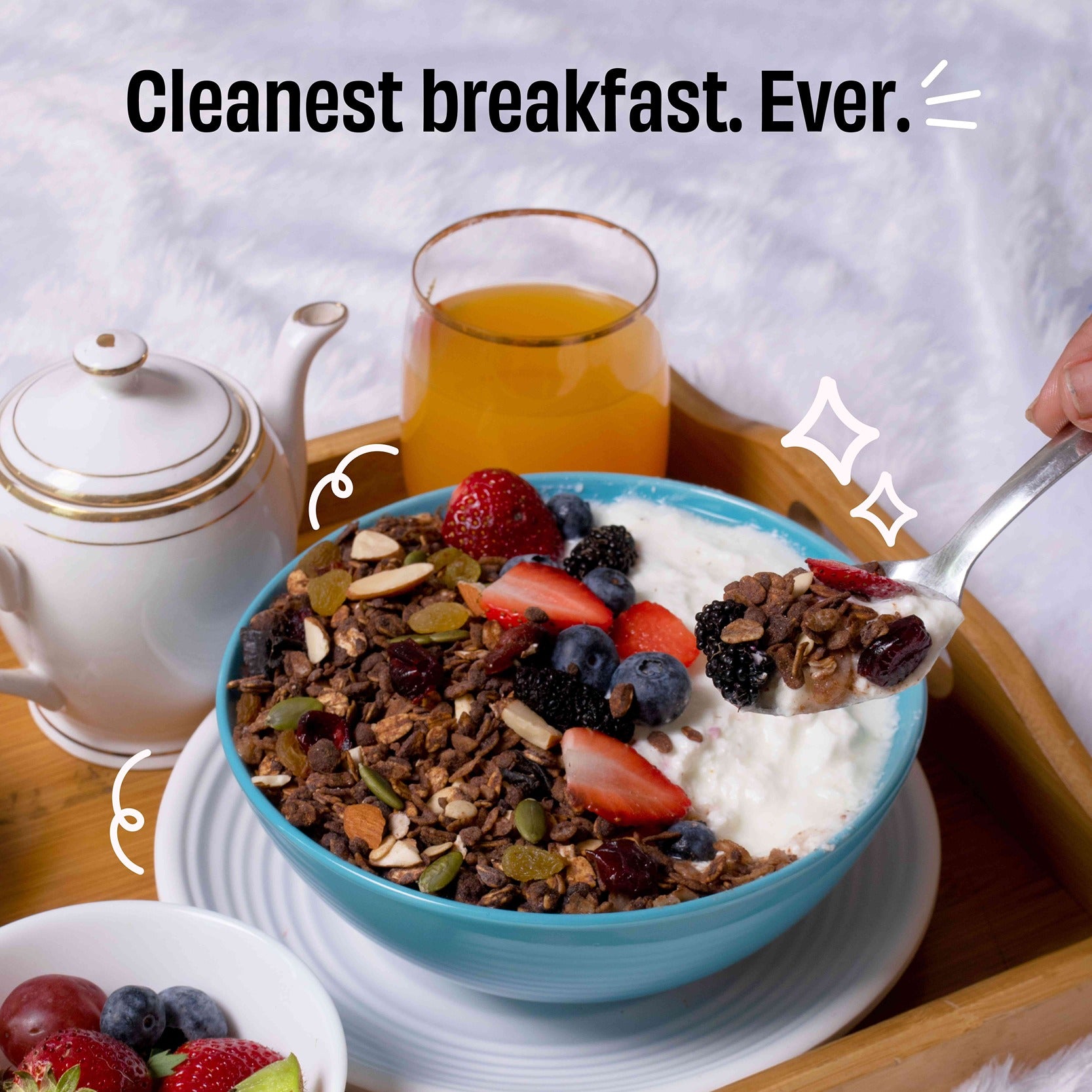 Crunchy oats, dipped in dark chocolate, topped with dried fruits & seeds. And when we say chocolate, we mean REAL chocolate that we make, bean-to-bar, in-house.